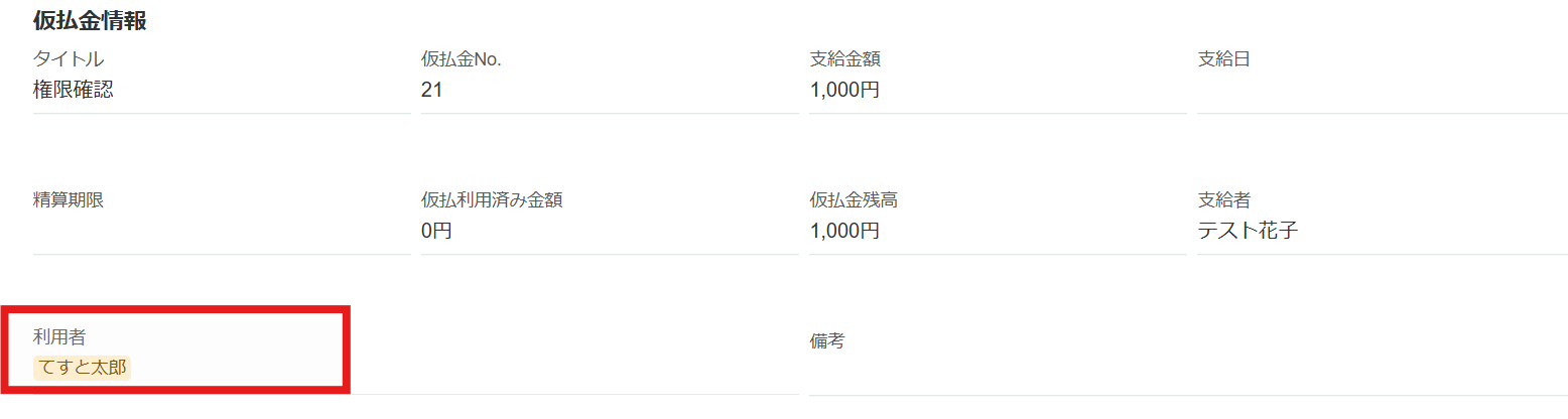 また「自分のみ」にチェックを入れた場合、仮払金の利用者が自身に設定されているもののみ紐づけが可能となります。