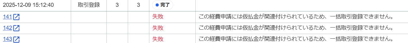 仮払金を紐づけて運用する場合、一括処理の範囲に制限があります。