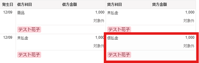 経費精算額 = 支給金額(同額)の場合