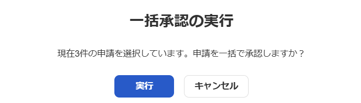 • 一括処理で選択した申請の中に、「自分が承認者ではない」ものがあるとその申請は承認失敗として処理されます。