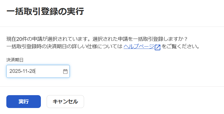 必要に応じて「決済期日」を選択して[実行]をクリックします。