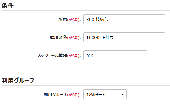 • 適用する所属・雇用区分・スケジュール種別を指定