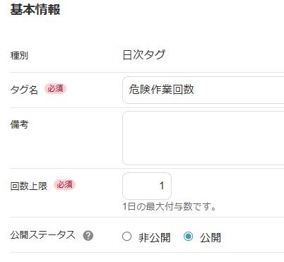 • 勤怠タグ「危険作業」⇔ 勤怠プラスの「危険作業回数」