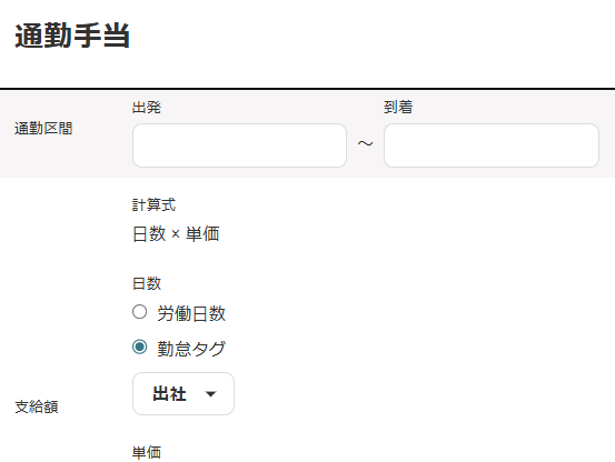 • 支給額計算タイプ:「勤怠タグに応じて支給」